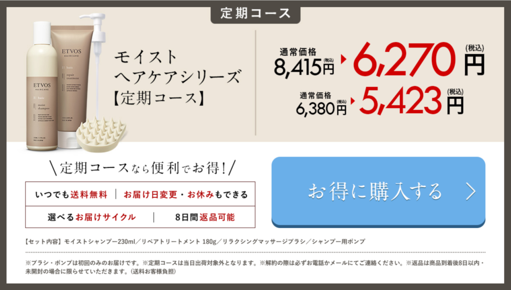エトヴォスはヘアケアシリーズとしてシャンプーとトリートメントがセットになったお得な商品を出しています。